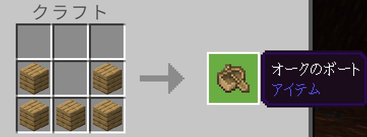 「オークのボート」は「オークの板材」5個でクラフトできます。